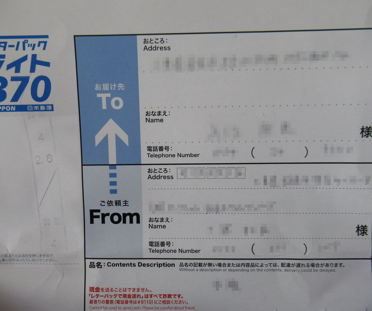 ダブルチェックの対象としてお送り頂いた当選書の一例