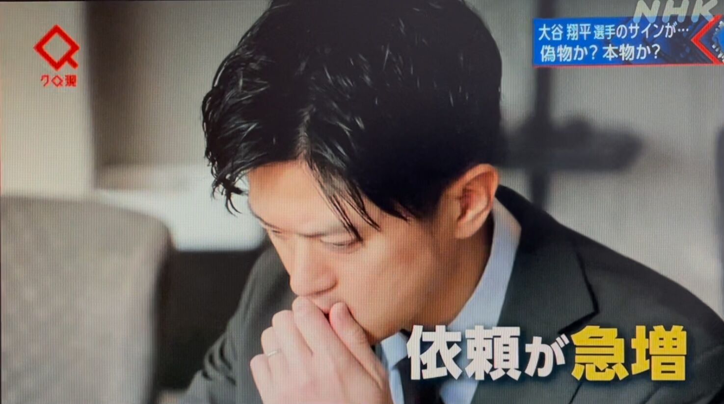 NHKの看板番組「クローズアップ現代」にも取材依頼を頂き 偽サインの対策、本物のサインと証明する方法として 鑑定方法や取得した特許を取材頂き、 スーパースポーツゼビオ様等、企業様のご活用例を 番組にてご紹介頂いた証明書になります。