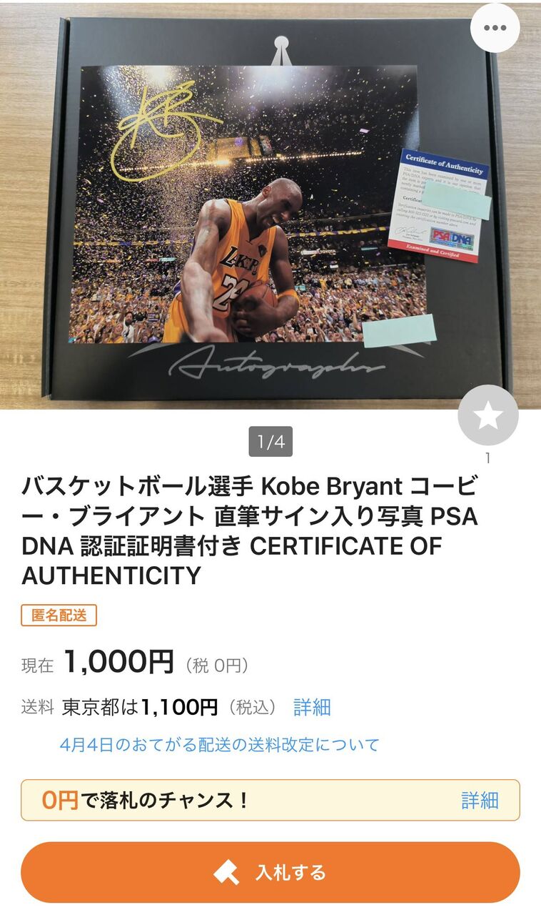以下の通り次々の偽造証明書付きの偽サインを出品しております。