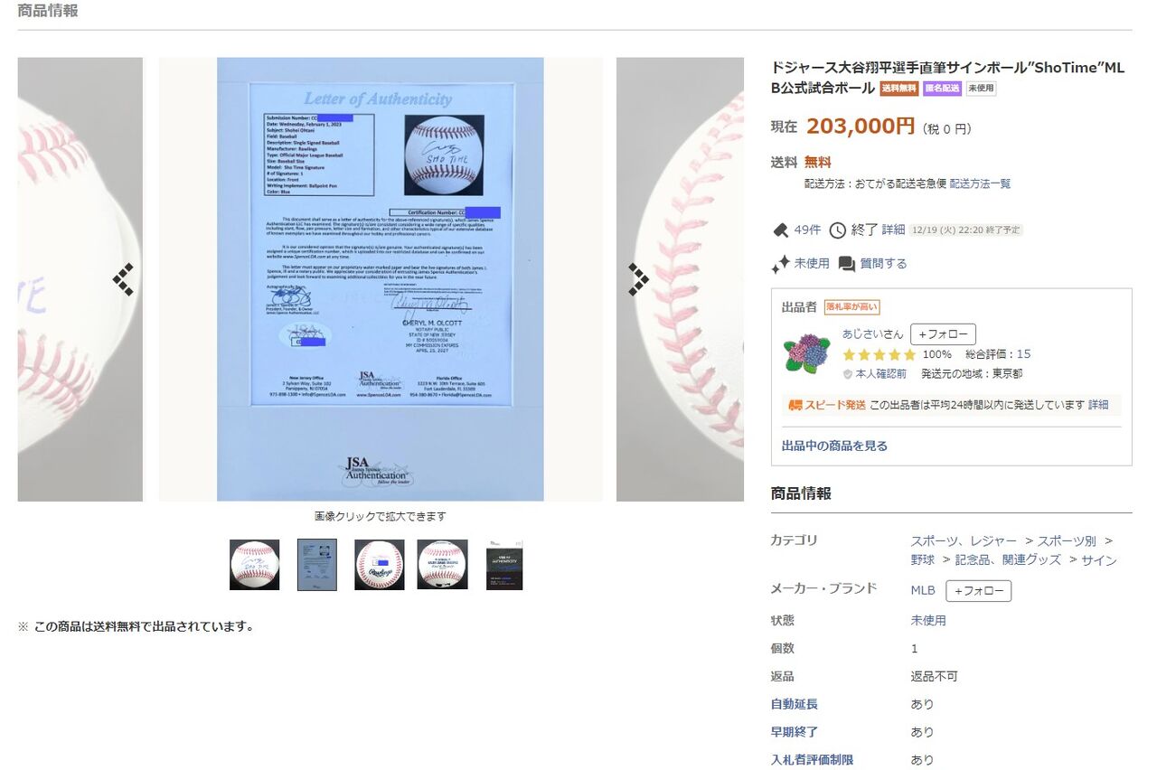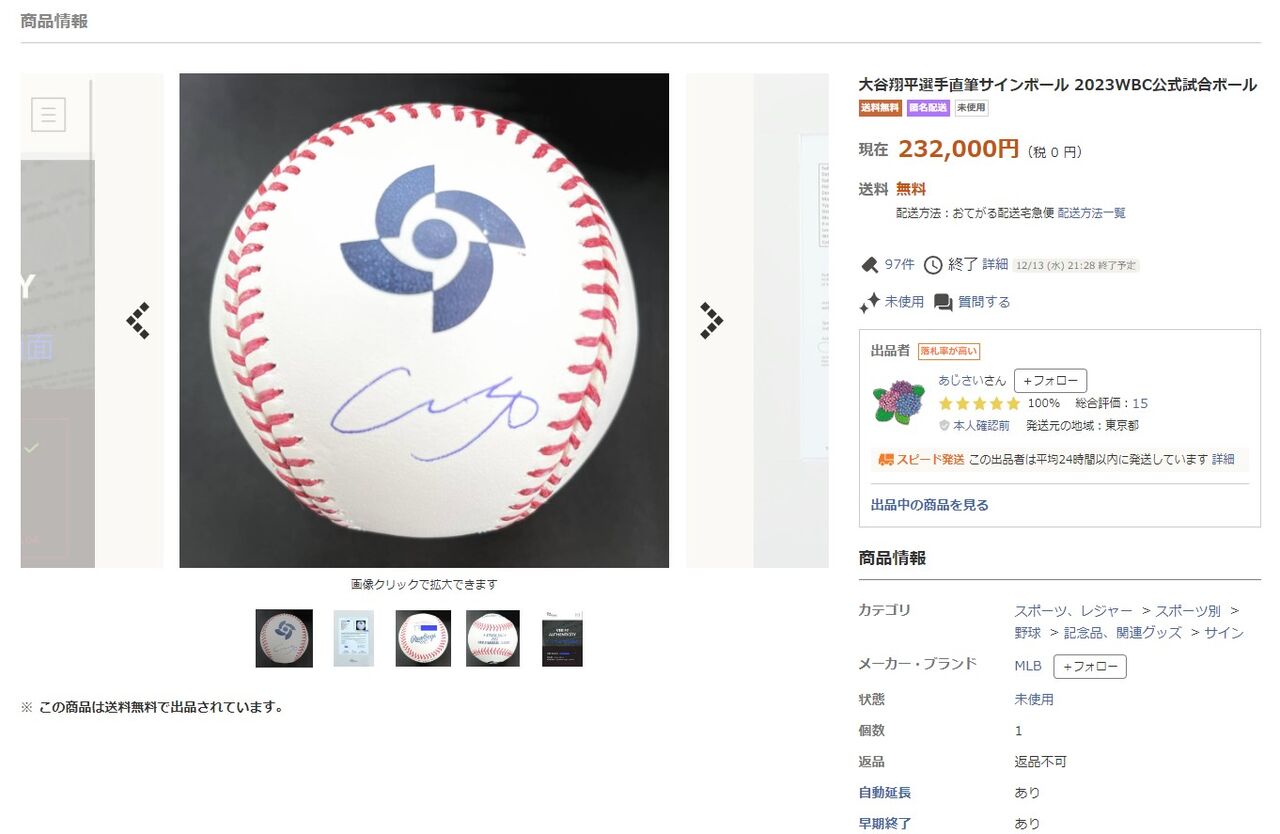 非常に高額に取引されている大谷翔平選手のサイングッズ。