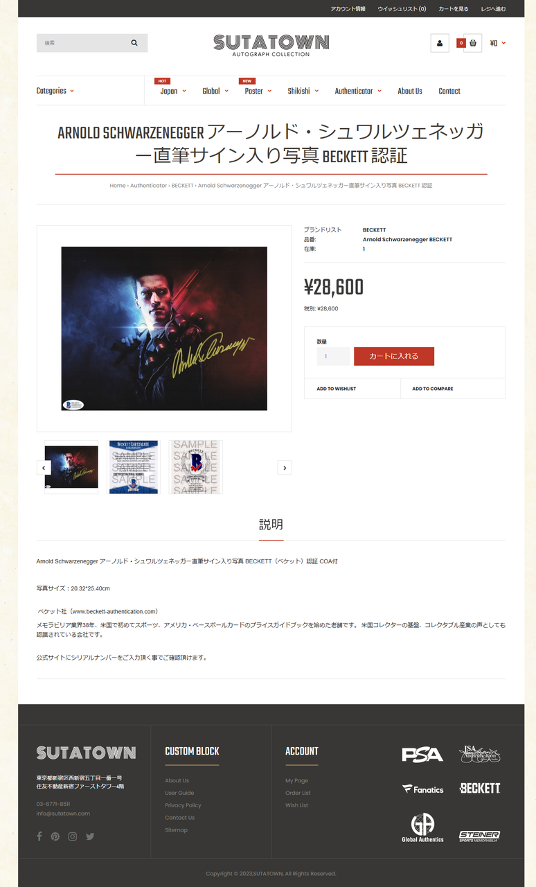 サイトを確認してみると偽PSADNA社証明書、偽ベケット社証明書、偽JSA社証明書と偽サインばかり販売していますね。。